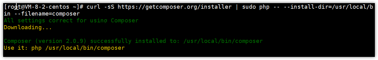 curl -sS https://getcomposer.org/installer | sudo php -- --install-dir=/usr/local/bin --filename=composer