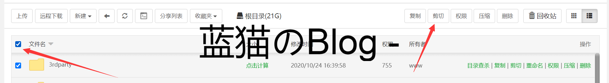 解压完成后进入nextcloud文件夹 点击文件名旁边的框 然后剪切