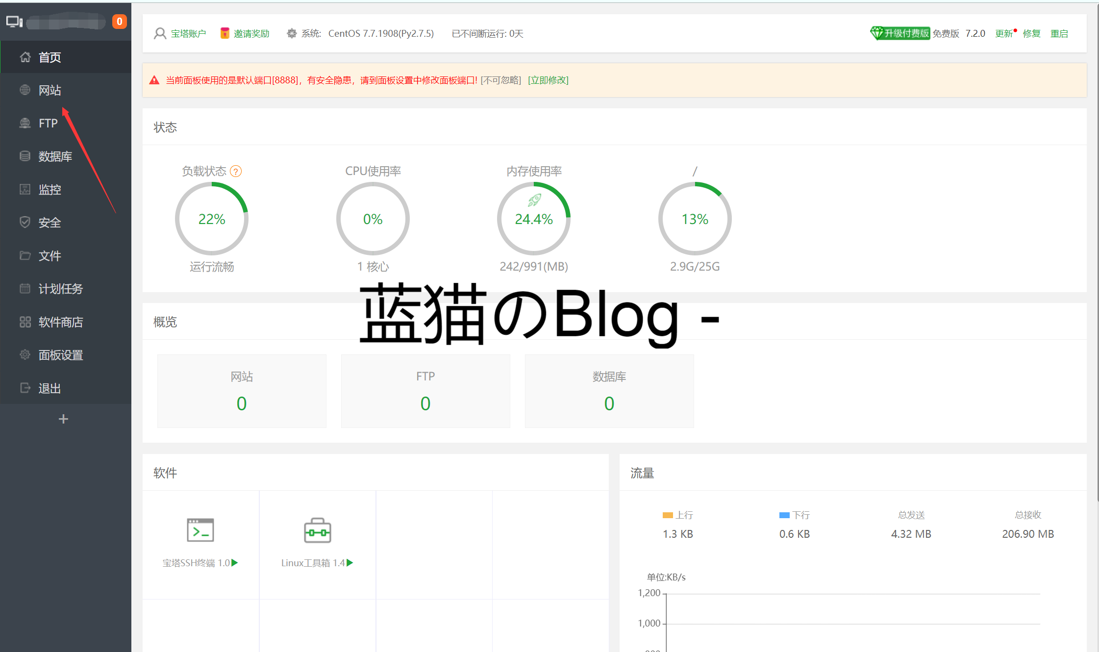 安装完成后打开左侧网站菜单